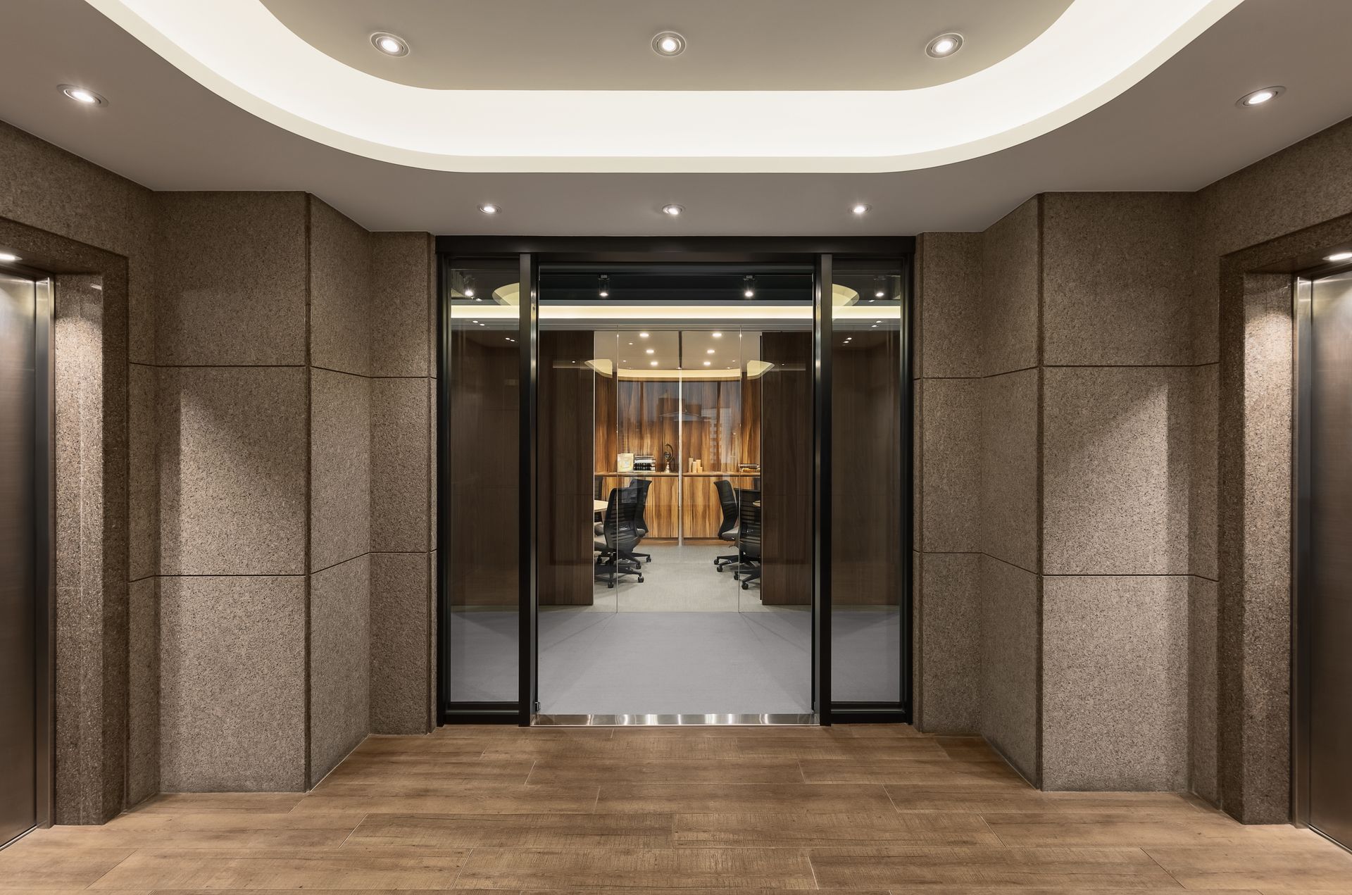 空間依順序主要區分為梯廳、辦公區、會議室及洽談區等,梯廳的天花光帶使壓迫感減低,讓原本狹小的空間達到放大的效果;兩間小會議室的可活動隔屏讓使用上變得更加彈性,形成複合的使用量體增加空間的機動性;員工的辦公領域,承襲自然材質的色調,並让自然光線挹注暖意令人倍感放鬆自在,讓使用者有如徜徉於自然之間安心放鬆。