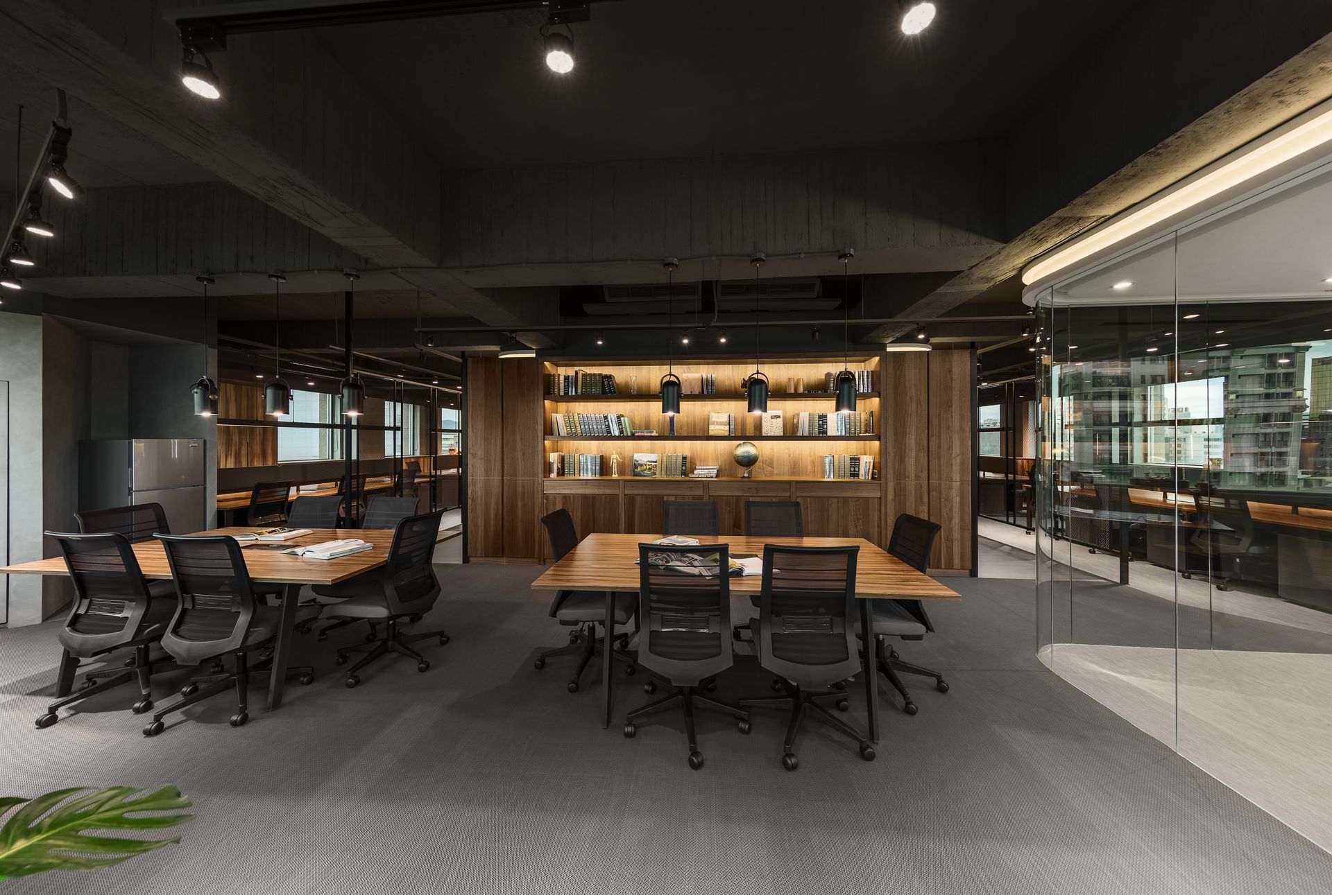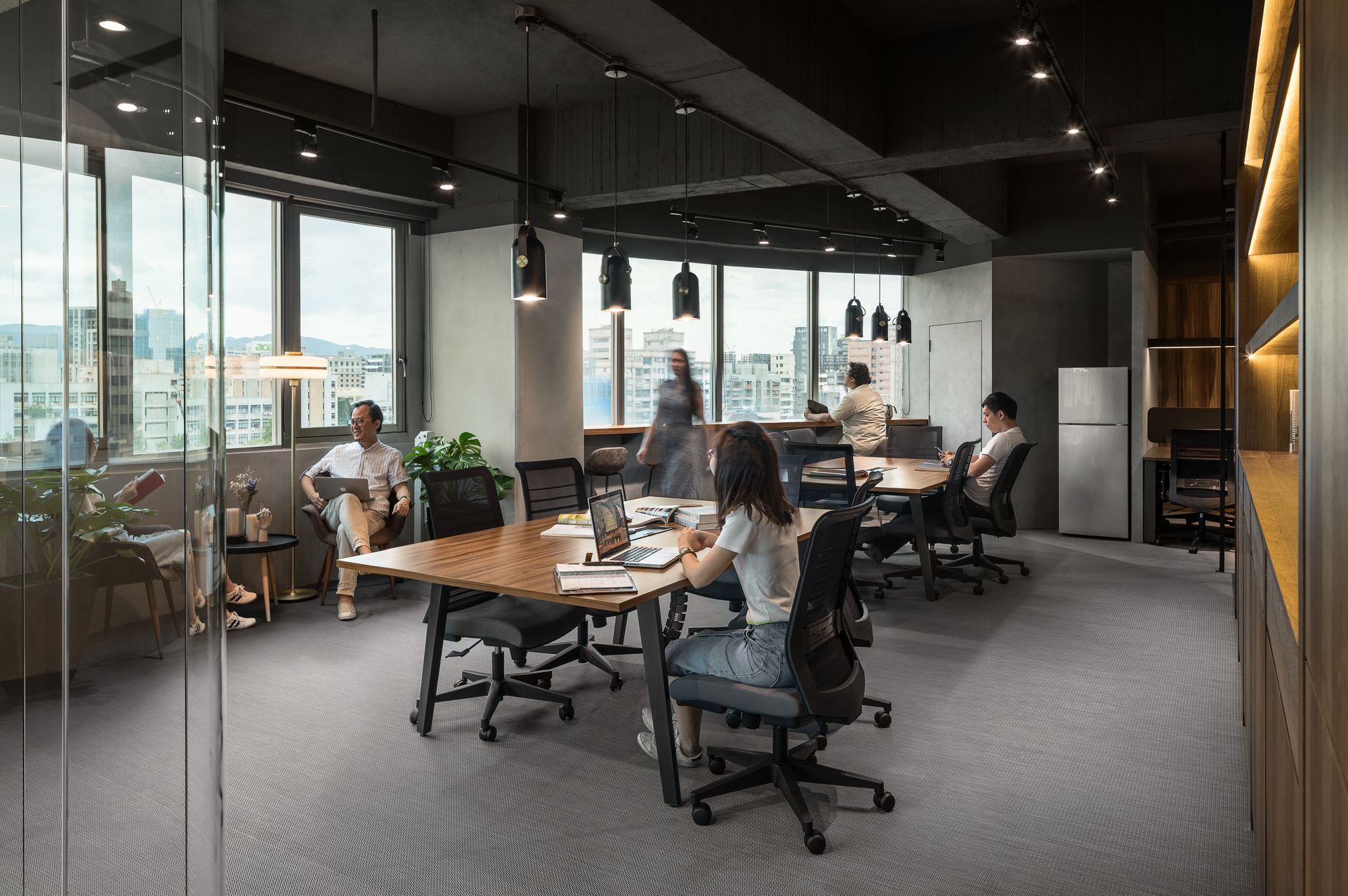 71坪辦公空間於企業使用,有別於一般的辦公室結構及空間分配,使用地理上的優勢及空間的開放與流動性使動線更加流暢,讓採光度提升,並著重於自然光線於空間的互動性,透過動線、格局、機能的完美分配,打造出理想的辦公空間。