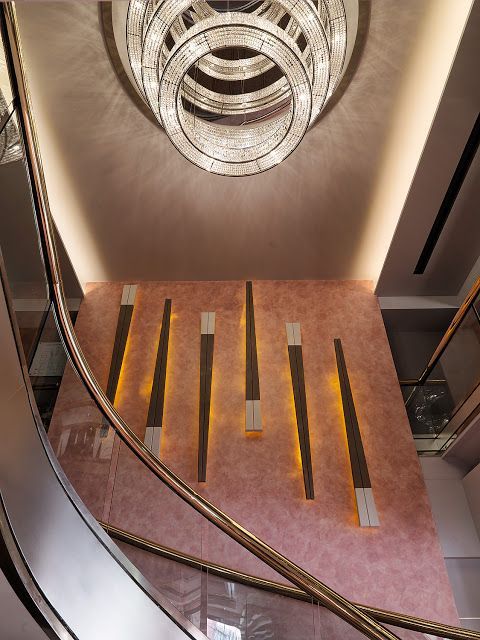 將元素抽象化後的隔屏作為視覺重心,視覺焦點並非以投射燈強調,而是著重在反光和穿透的同時進行所造成的效果:明亮的周圍格柵由洗牆滲出反光,以及另一側穿透黑玻格柵的光線,加上本身格柵的紋路,創造了明暗乍現的芭蕉叢林內外互望的氛圍。