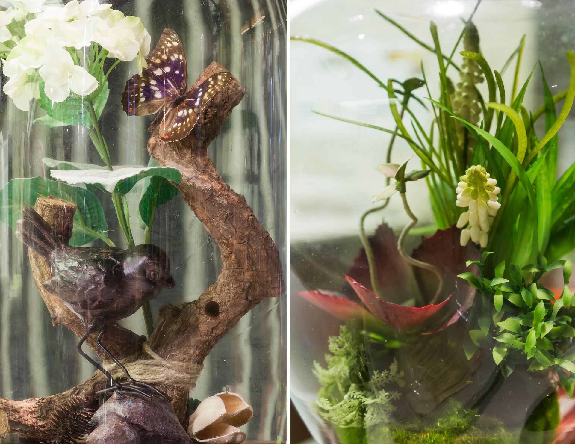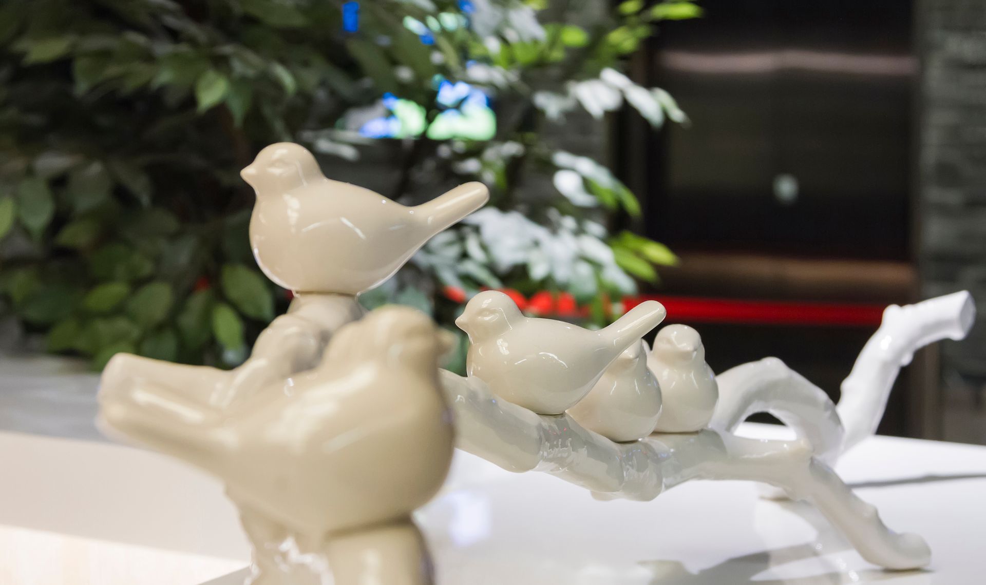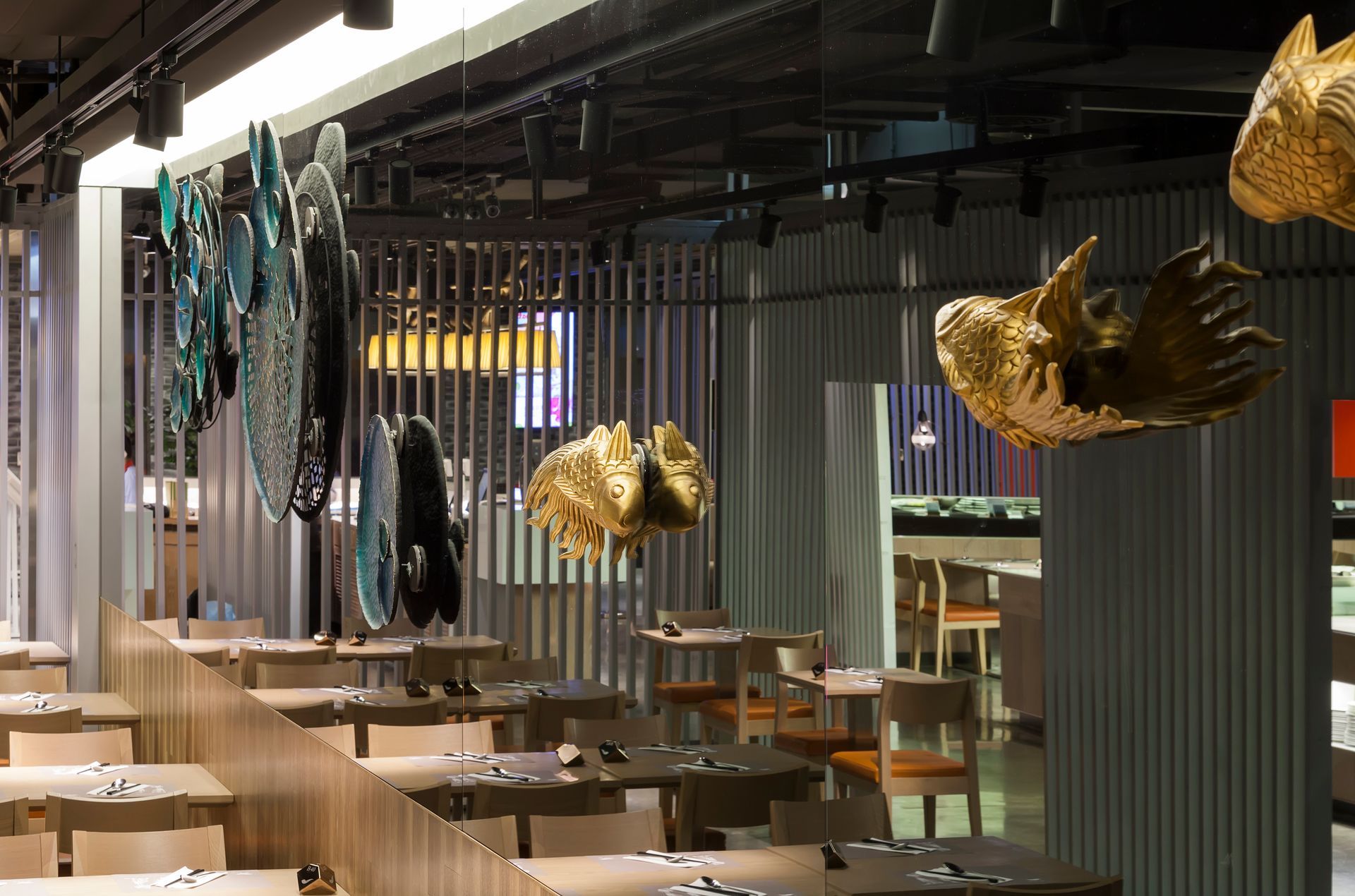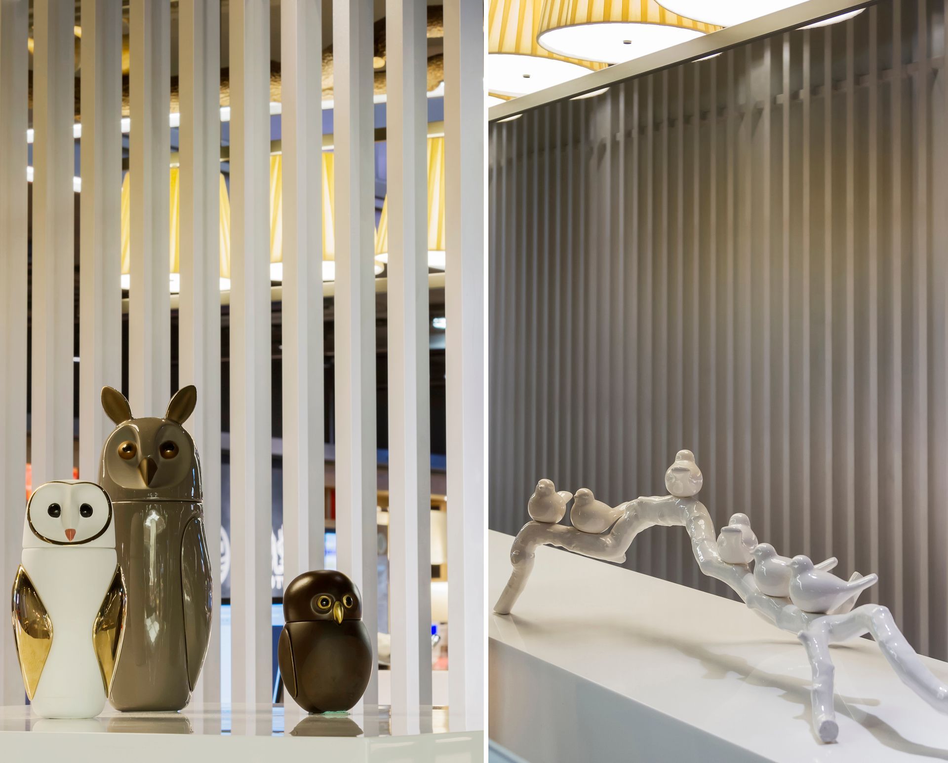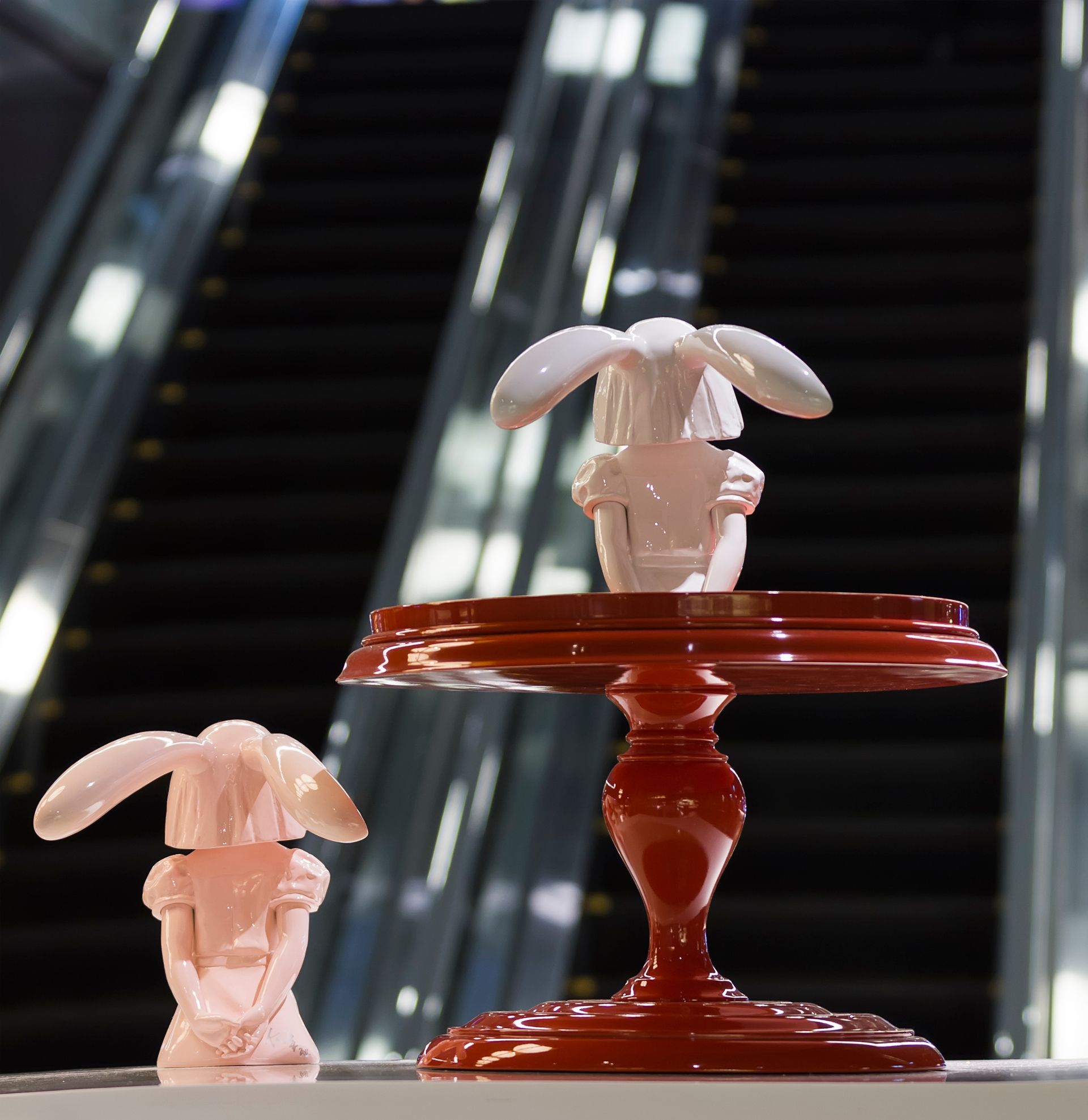 入口處兩隻擬人化的兔子姑娘微微揚起臉,彷彿正在體驗微風吹拂過臉及經過髮絲的涼快,進入餐廳,迎面而來的是可愛的瓶中精靈,帶領您進入他們的世界,散落在餐檯各處的動物們正在告訴您慢下腳步,一起享受這兒悠閒的時光,牆面上的金魚像是吃飽後在散步,悠閒地輕輕地遊在池塘中,如此滿足。